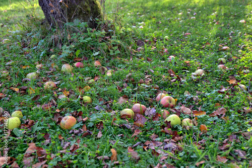W jesiennym starym sadzie pozostają opadłe jabłka które świadczą o obfitości owoców. Opadłe jabłka w opuszczonym sadzie napawają nostalgią i tęsknotą za latem, są zwiastunem nadchodzących chłodów.