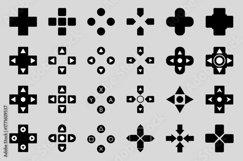 Video game controller button set collection flat vector icon for games and websites.