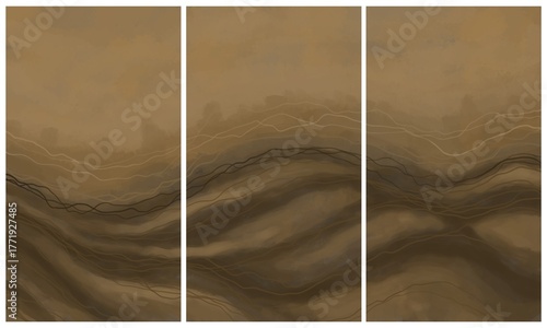 Modern interior triptych. The picture is painted by hand on a tablet