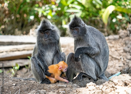 Lutungi srebrzyste rodzina rodzice z dzieckiem Borneo