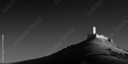 Una fortaleza imponente se alza sobre una colina escarpada bajo un cielo crepuscular.