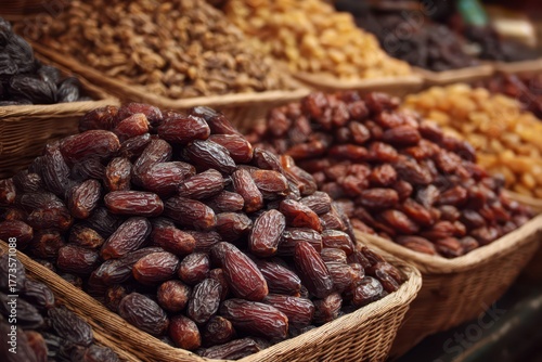 Bulk Dates. Dried Sweet Dates in Bulk at a Market with Sticky and Wrinkled Texture