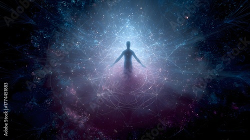 Awakened Consciousness: A Human Silhouette Radiating Cosmic Energy