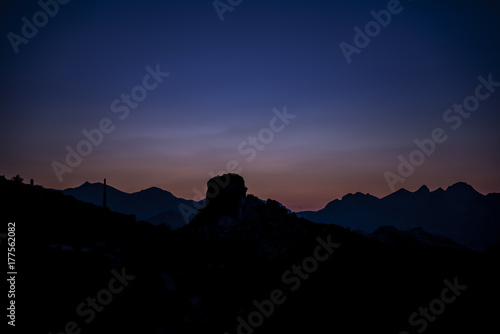 Silhouette Mountain after sunset with beautiful dark blue skies