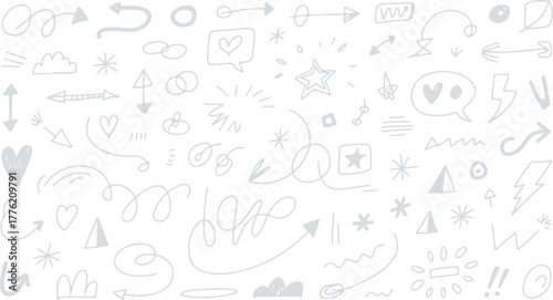 Hand drawn sketch alphabet vector set with doodle symbols and seamless pattern design illustration