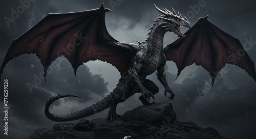 Dark Fantasy Dragon Epic Mythical Creature in Mysterious Legendary World.