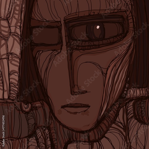 Abstract face. Abstract image for printing. Picture for modern interiors. The picture is painted by hand on a tablet.