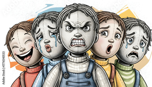 Kids' Emotional Spectrum - Anger, Joy, Sadness, and Surprise Expressions