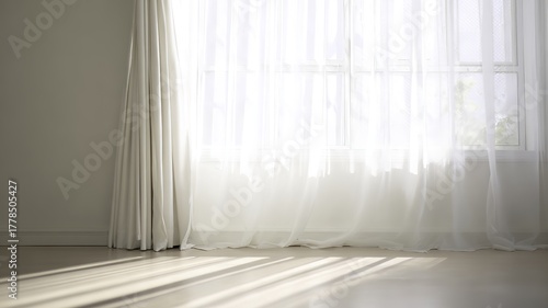 Sunlight streaming through sheer white curtains in a minimalist room