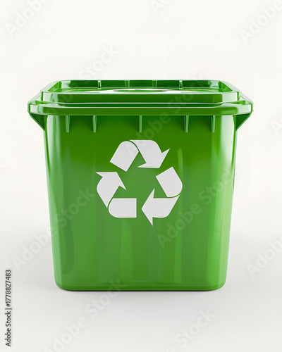 Zielony pojemnik do recyklingu z symbolem segregacji – kosz na odpady z tworzywa na białym tle