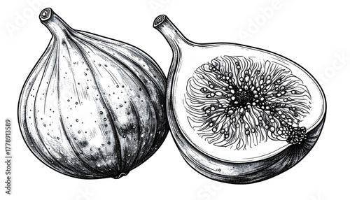 Minimal Line Art of Fig Fruit – best resipiWhole and Cut Half with Intricate Seed Pattern