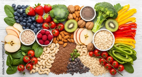 Low Glycemic Index Food Flat Lay – Fruits, Vegetables, Nuts & Grains