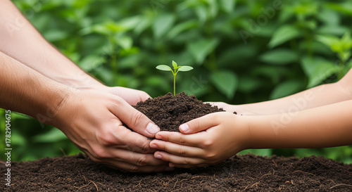 Nurturing the Earth: Close-Up Vertical Shot of a Young Sprout Held Carefully Above Soil Representing New Life and Environmental Renewal Initiatives.