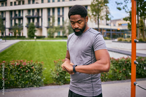 Ordinary Man Pursuing Weight Loss Through Outdoor Workout And Self-Tracking On Watch