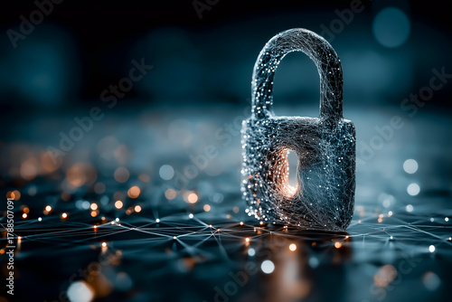 サイバー攻撃対策を象徴する煌めく南京錠セキュリティ背景