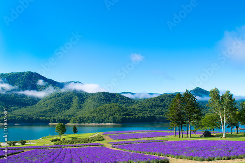 ラベンダー畑と湖 金山湖 南富良野 富良野