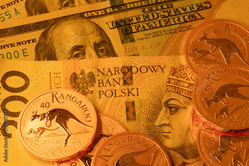 Złote momenty na tle banknotów
