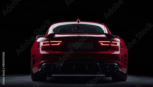Czerwony, nowoczesny, luksusowy samochód na czarnym tle. Widok z tyłu