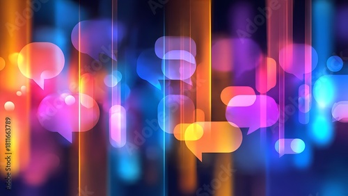 Vibrant speech bubbles, social media engagement trend