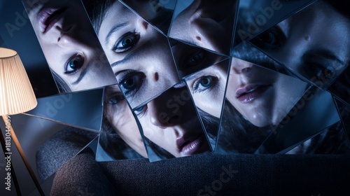 incivility. Broken mirror fragments reflecting multiple faces, symbolic of fractured trust and impossible reassembly. wellbeing guides.