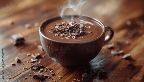 贅沢な一杯:湯気立つ濃厚ホットチョコレートと削りチョコ