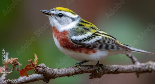 Vibrant Chestnut-Sided Warbler Perched on Branch, Showcasing Colorful Feathers in Wild North America