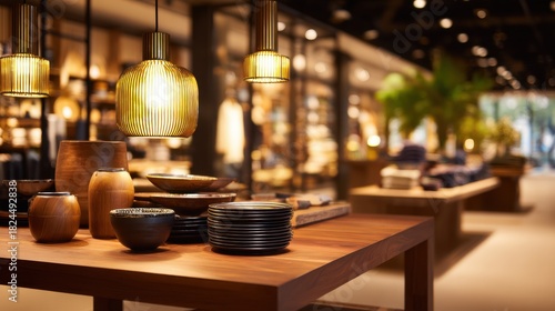 Elegant display of handcrafted pottery and tableware in a stylish, modern retail store interior