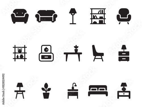 Solid Black Furniture Icons – Minimal Home & Decor Silhouette Pack Vol.4