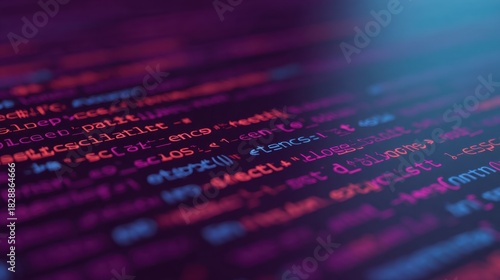 Colorful abstract representation of computer code emphasizing programming languages and digital technology in vibrant light and dark backgrounds