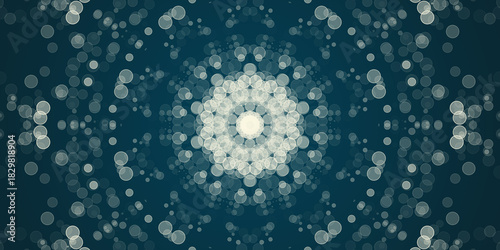 Fondo abstracto de mandala de bokeh luminoso en tonos azul marino y blanco