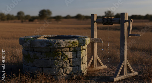 Rural Serenity: Stone Well Beckons with Rustic Charm Nostalgic Journey to Simple Living An Invitation to Reflect in Tranquil Landscapes Countryside Solitude Retreat 180