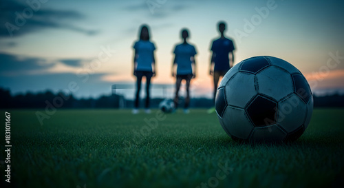 Youth Football Training Evening A Group of Young Players Enhance their Skills at Football During Sunset A Focus on Skill Development Learning and Teamwork on the Field