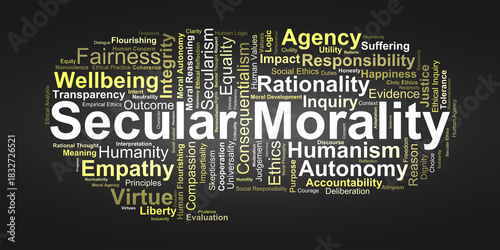 Secular Morality Word Cloud. Core Ethical Terms Shaping Reason Based Moral Understanding