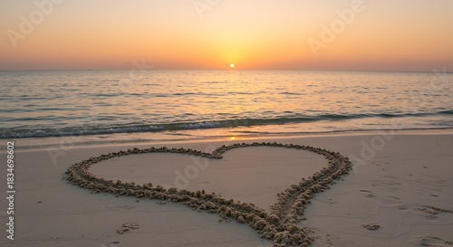 夕焼けの砂浜の愛
