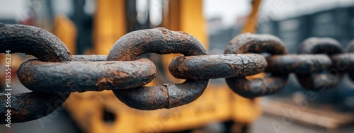 Detailed View of Forklift Mast Chain Links Under Heavy Tension in Industrial Environment