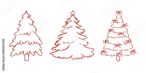 Set of hand drawn vector Christmas trees in whimsical style. Trendy lineart decoration