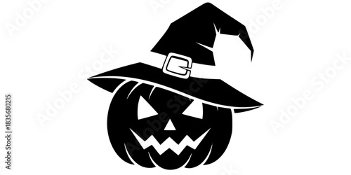 Halloween Pumpkin Witch Hat Vector Silhouette
