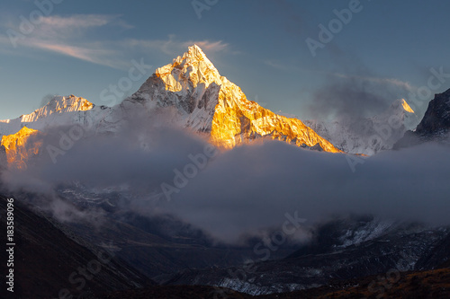 Ama Dablam (6856m) peak near the village of Dingboche in the Khumbu area of Nepal, on the hiking trail leading to the Everest base camp.
