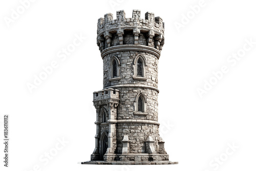 Historic medieval castle tower isolated on transparent background