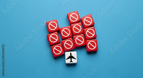 Flight ban concept. Closing of air borders, restriction of flights, prohibited flight from the country, violation of air traffic.