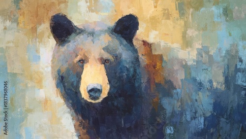 熊の油絵アート 彩り豊かな抽象背景と野生動物イラスト