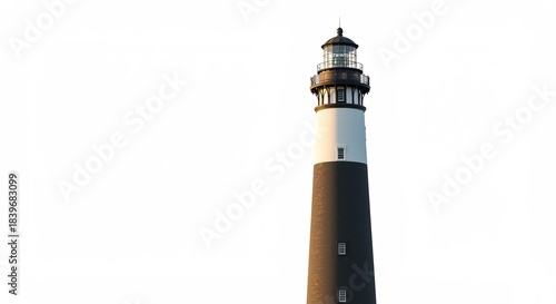 白い背景に堂々とそびえ立つ孤高の灯台 航海の安全を静かに見守る希望の光. AI Generated