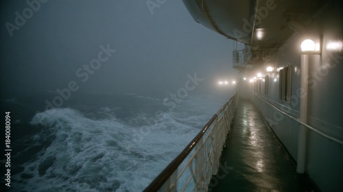 A ship battling tempestuous waves during Stormy Weather Appreciation Day, invoking maritime wanderlust and seafaring folklore under misty lanterns