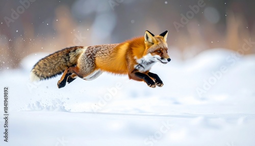 冬の雪原で跳ねるキツネを捉えた野生動物写真