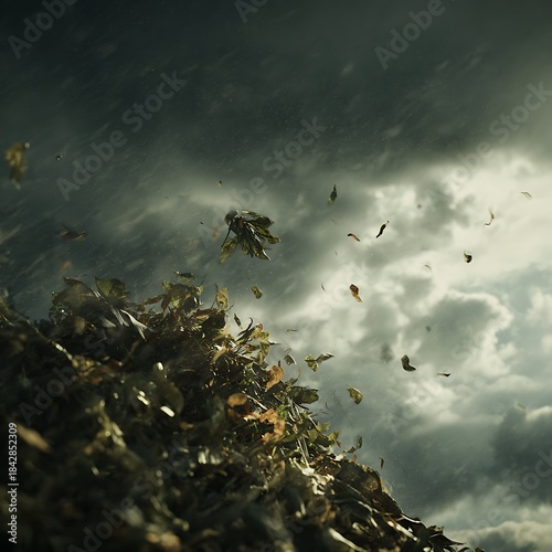 Dramatic Strong Wind Blowing Leaves Dust Up Under Dark Storm Sky