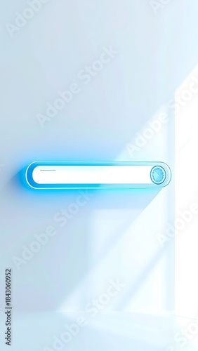 A glowing blue search bar with a clock icon, casting a shadow on a clean, bright white wall.
