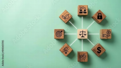 Strategic decision-making event business ethics reflection corporate office visual diagram professional environment aerial view conceptual analysis