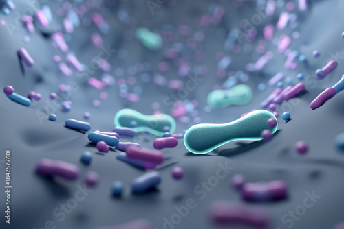 Lactobacillus colonization on biological surface for microbiome balance. 3D render