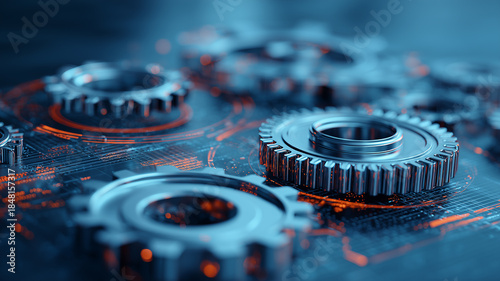 Metal gears arranged over electronic circuits symbolizing automation, engineering efficiency and technological precision.