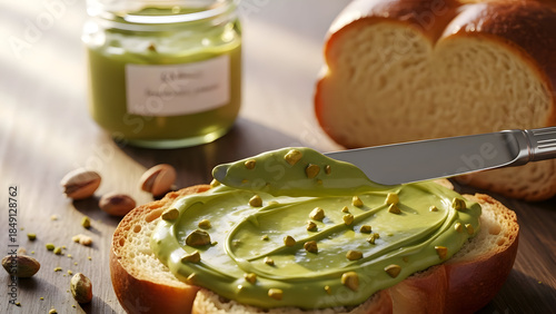 Delicious slice of bread with creamy avocado spread and seeds on top with a knife